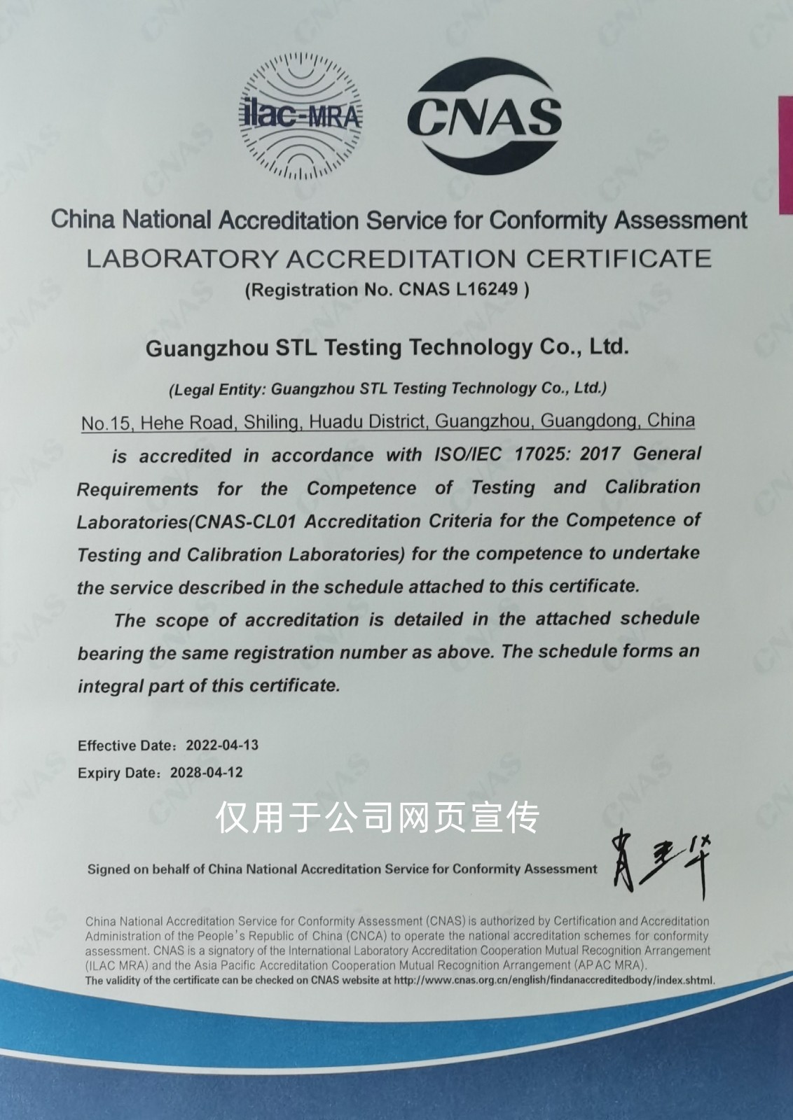 廣州市順通檢測科技有限公司自成立以來,在消費品領(lǐng)域努力探索,持續(xù)引進(jìn)先進(jìn)的檢測儀器設(shè)備,2022年4月順利通過CNAS評審,榮獲中國合格評定國家認(rèn)可委員會頒發(fā)的“實驗室認(rèn)可證書”,并向美國消費品安全委員會申請,成功成為美國消費品安全委員會CPSC認(rèn)可實驗室。
